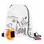 La mochila viene con un dibujo impreso y cinco rotuladores de colores.