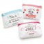 - Con envoltorio artesanal en papel de celofán, con lazo decorativo y chapa de recuerdo, todos variados en colores. Una opción ideal si quieres recibir tus detalles listos para entregar.